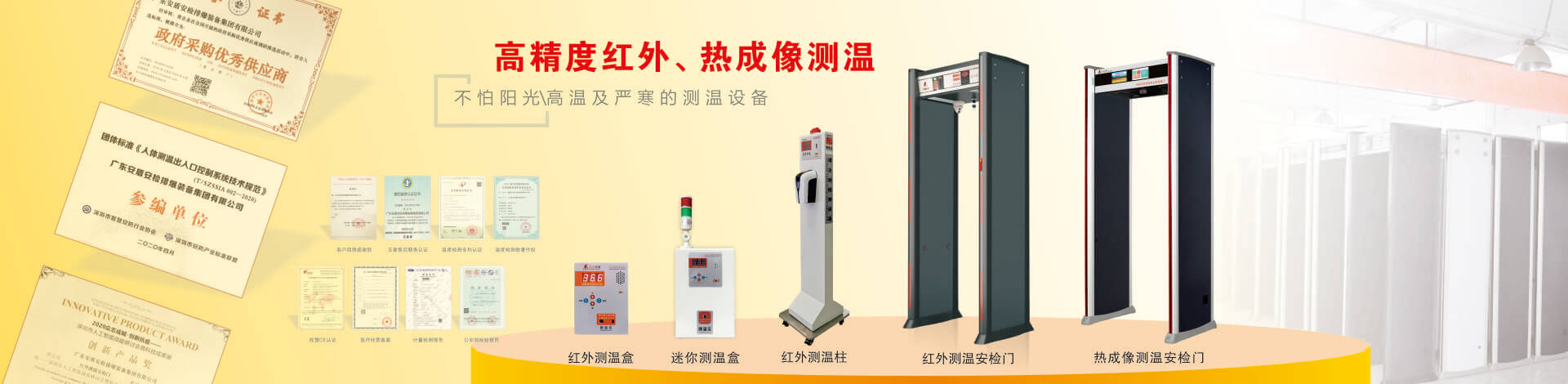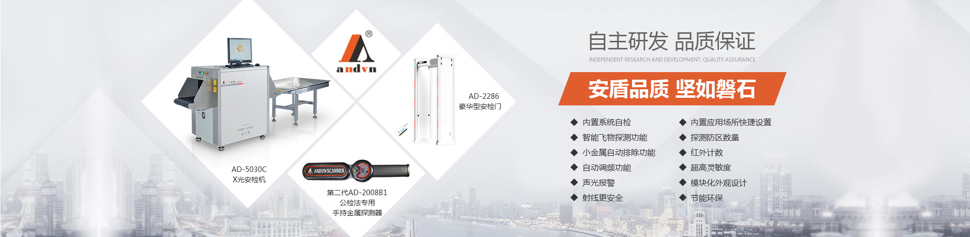 目前公司技術(shù)底蘊(yùn)日益豐厚,擁有多項(xiàng)國(guó)家專(zhuān)利,在產(chǎn)品開(kāi)發(fā)和創(chuàng)新方面有較深的制造經(jīng)驗(yàn)。“安盾品質(zhì) 堅(jiān)如磐石”是安盾人永恒不變的發(fā)展理念,公司目前已通過(guò)國(guó)際質(zhì)量體系認(rèn)證、國(guó)際環(huán)境體系認(rèn)證、國(guó)際職業(yè)健康體系認(rèn)證、產(chǎn)品已通過(guò)國(guó)家安全防范報(bào)警系統(tǒng)檢測(cè)中心和公安部安全與用電子產(chǎn)品質(zhì)量檢測(cè)中心合格認(rèn)證,并取得所有型號(hào)檢測(cè)報(bào)告,《GB15210-2003通過(guò)式金屬探測(cè)門(mén)》標(biāo)準(zhǔn);并獲得國(guó)家高新技術(shù)企業(yè)認(rèn)證、國(guó)家AAA級(jí)信用認(rèn)證,歐盟CE認(rèn)證、ROHS認(rèn)證、美國(guó)FCC認(rèn)證、廣東職業(yè)衛(wèi)生檢測(cè)中心頒發(fā)的檢測(cè)報(bào)告、東莞市環(huán)境保護(hù)局頒發(fā)的《輻射安全許可證》,中國(guó)人民解放軍認(rèn)證產(chǎn)品、中華人民共和國(guó)進(jìn)出口企業(yè)、愛(ài)心公益企業(yè)等榮譽(yù)稱(chēng)號(hào);先后被當(dāng)選為中國(guó)安全防范產(chǎn)品行業(yè)協(xié)會(huì)會(huì)員單位、廣東安防行業(yè)協(xié)會(huì)理事單位、東莞市安防行業(yè)協(xié)會(huì)常務(wù)副會(huì)長(zhǎng)單位、中國(guó)安檢排爆聯(lián)盟常務(wù)理事單位、連續(xù)五年榮獲廣東省守合同重信用企業(yè)、中國(guó)警用裝備十大品牌、中國(guó)十大特種裝備品牌、科技型中小企業(yè)、廣東省高新技術(shù)產(chǎn)品等榮譽(yù)稱(chēng)號(hào)、安盾集團(tuán)平均每年服務(wù)至少200場(chǎng)大型活動(dòng)安保任務(wù)。